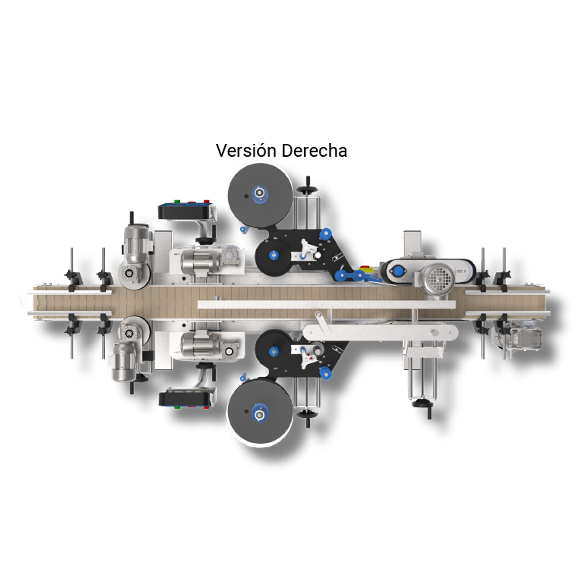 El sistema de alineador de cadena orienta el producto, asegurando la correcta posición de los envases antes de aplicar la etiqueta